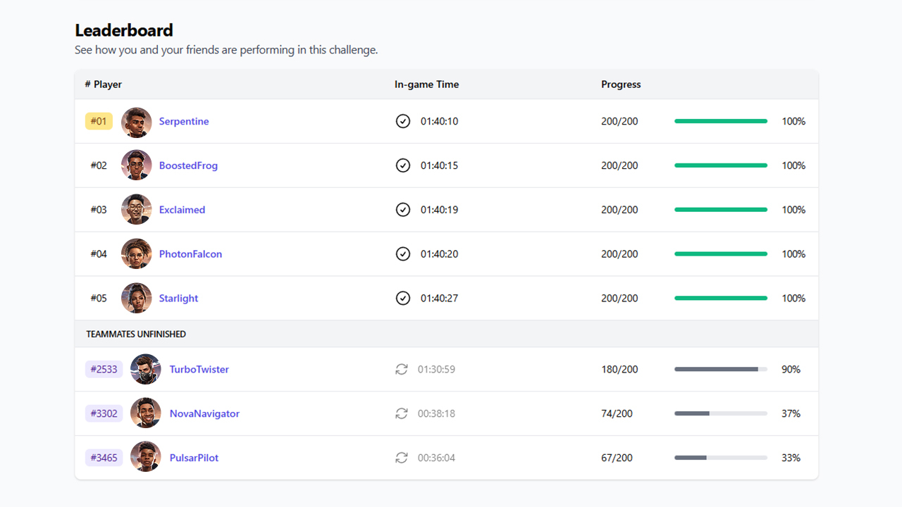 Your performance is tracked through your Gamerpad profile, giving you full insight into your gameplay. And when you hit that final milestone? You’ll earn a Challenge badge and a spot on the leaderboard for everyone to see.