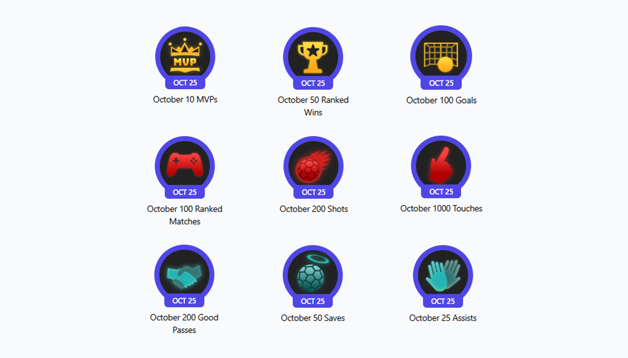 Each Challenge focuses on a key skill or milestone — from hitting 100 goals, to 200 good passes, to earning 10 MVPs in a month.